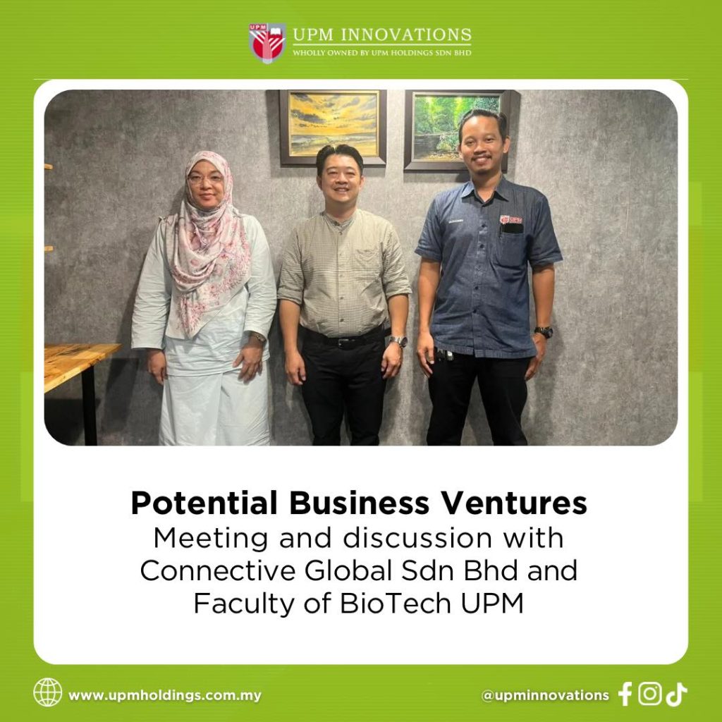 Waste-to-wealth. UPMInno with Dr. Ahmad Muhaimin Roslan, a researcher in Environmental Biotechnology from the Faculty of Biotechnology and Biomolecular Sciences UPM, have attended a productive meeting with Mr. Edric Chan, the Managing Director of Connective Global Sdn. Bhd.